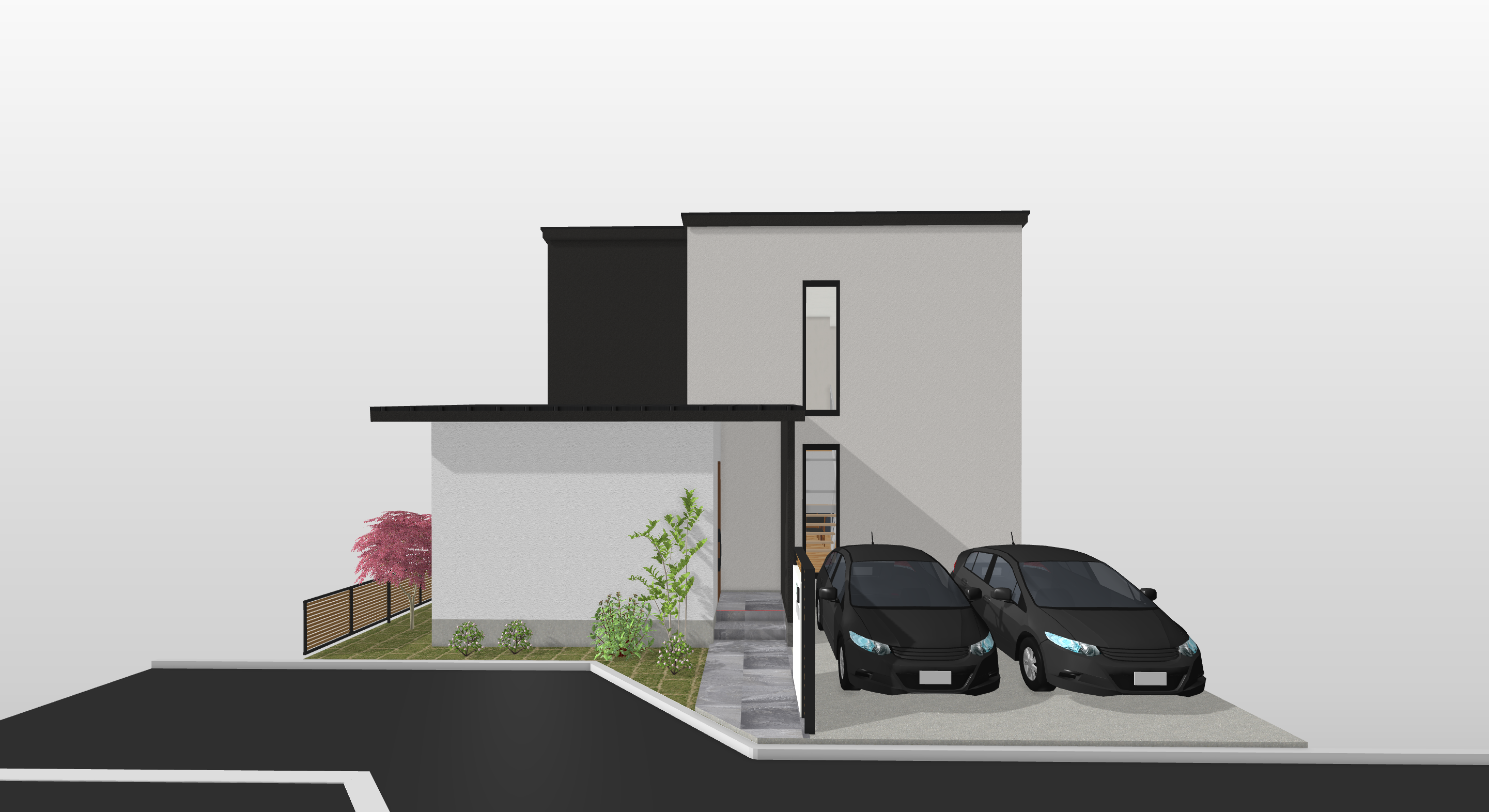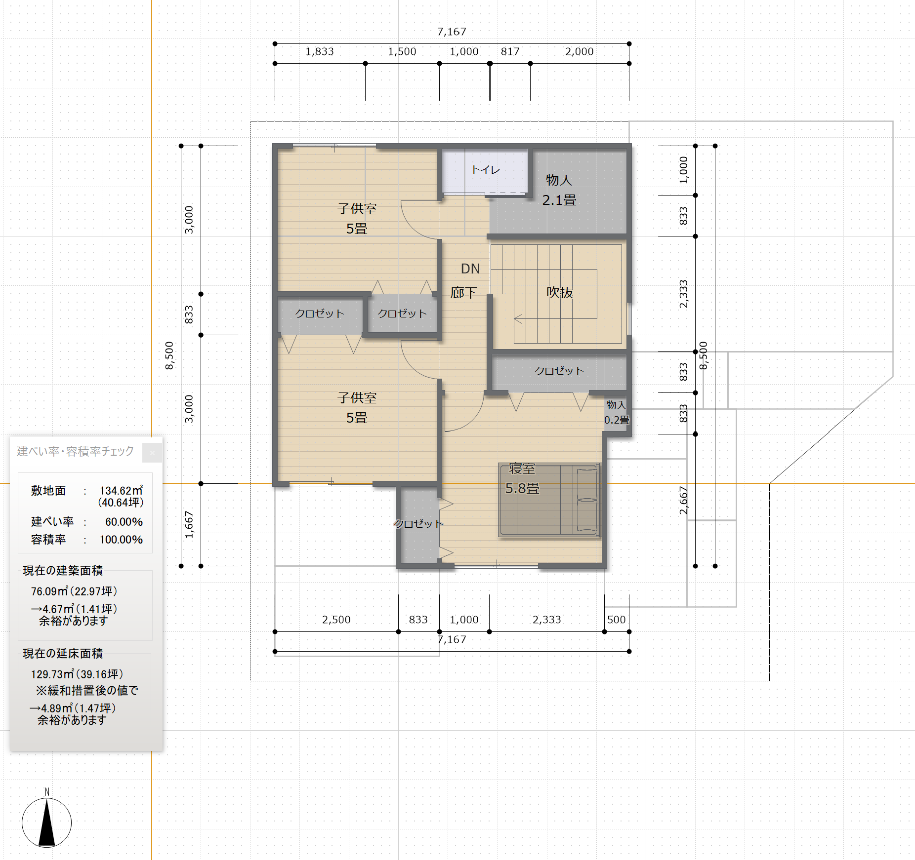 在来工法を想定して、尺グリッドで設計しました。 アプローチ、坪庭、ランドリースペース、書斎、割と贅沢なプランで…