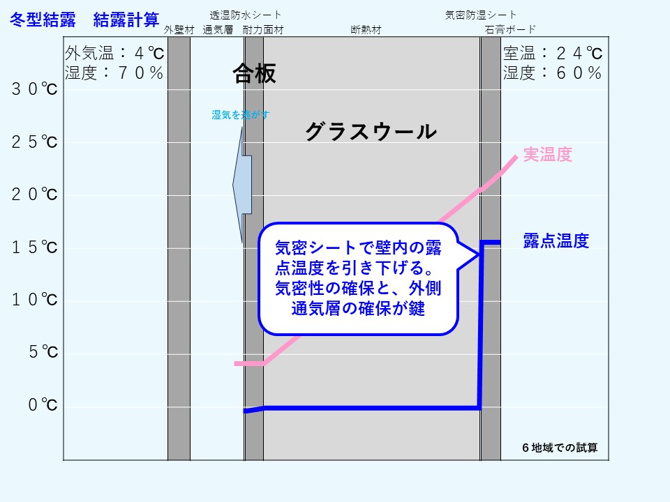 もし心配なようでしたら、お願いしているHMや工務店さんに、結露計算は冬型、夏型でそれぞれ行なっているか、その計算の前提となる温度差の設定は地域の実態に即したものかを聞いてみましょう。
