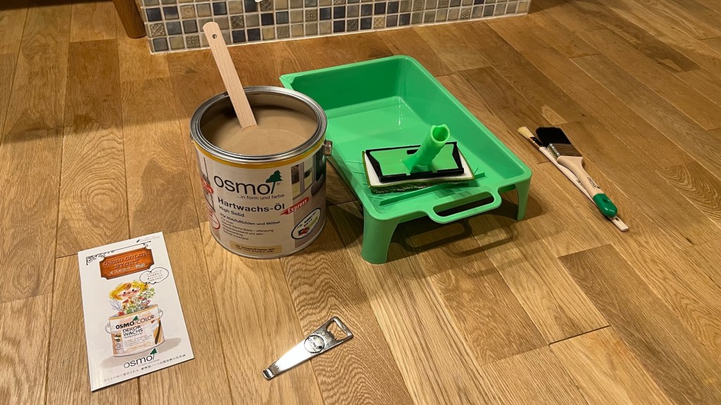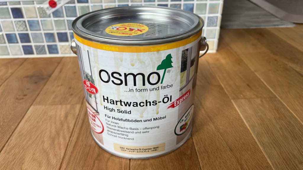 使用したのはこちら。安心安全のドイツ製、OSMO & EDEL社のオスモカラーフロアークリアー エクスプレス つや消しです。